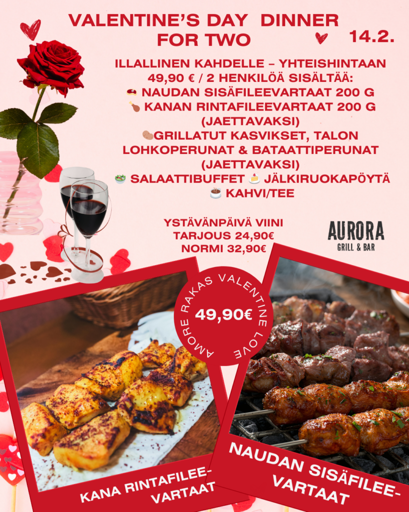 Ystävänpäivä on yksi vuoden odotetuimmista illoista Aurora Grill & Barissa, ja paikat täyttyvät nopeasti.