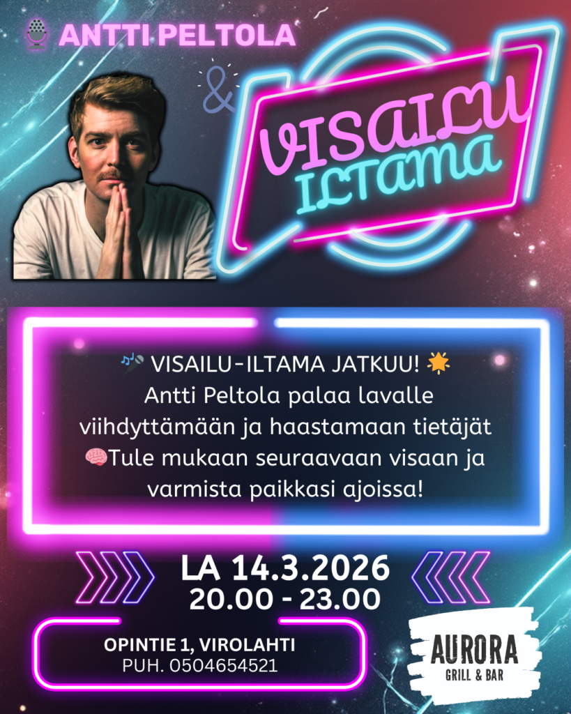 Karismaattinen visaisäntä Antti Peltola johdattaa illat täyteen tietoa, naurua ja hyvää tunnelmaa.